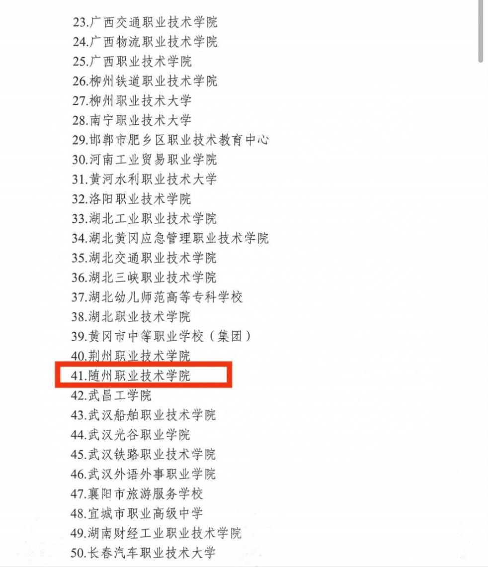 近日,教育部教育技术与资源发展中心(中央电化教育馆)公布了2025年度“信息化支撑职业院校校企合作专业共建项目”共同体成员名单,随州职业技术学院成功入选,全国共有86家单位获此资格。