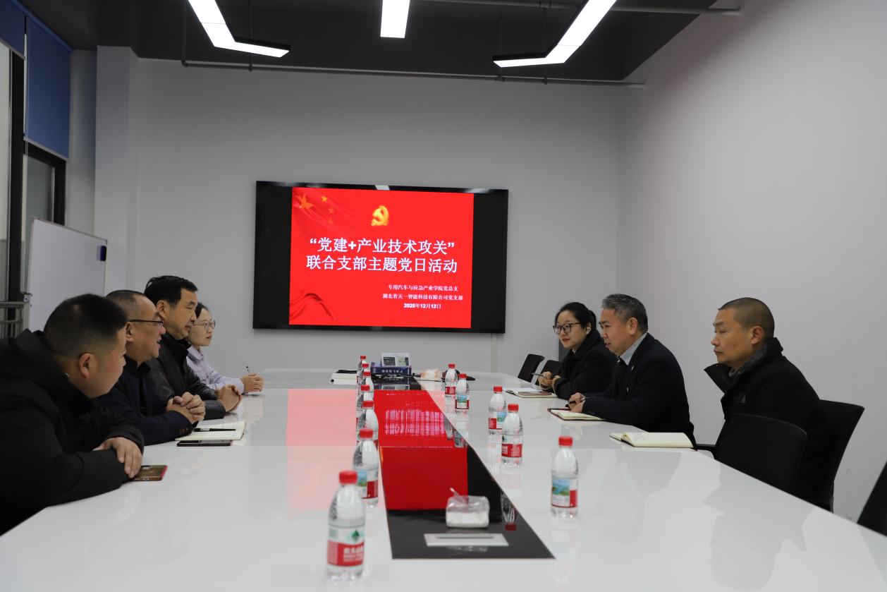 湖北省天一智能科技有限公司是我校专用汽车与应急产业学院的重点合作企业,近年来持续接收我校学生实习就业,一批毕业生已成长为技术骨干。此次走访旨在巩固既有合作成果,拓展协同育人新路径,并创新开展了“党建+产业技术攻关”联合主题党日活动,推动校企合作向更深层次、更高质量迈进。